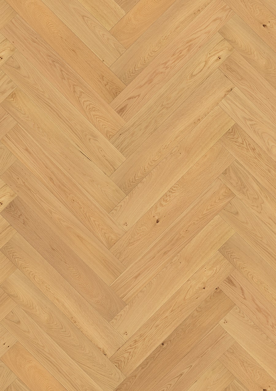 Die Oberfläche der einzelnen Dielen ist gebürstet, geölt oder lackiert und mit 4-seitiger Mikrofase versehen, sodass sie mit unserem Fischgrätparkett Ihrem Raum einen ganz besonderen Charakter verleihen.
