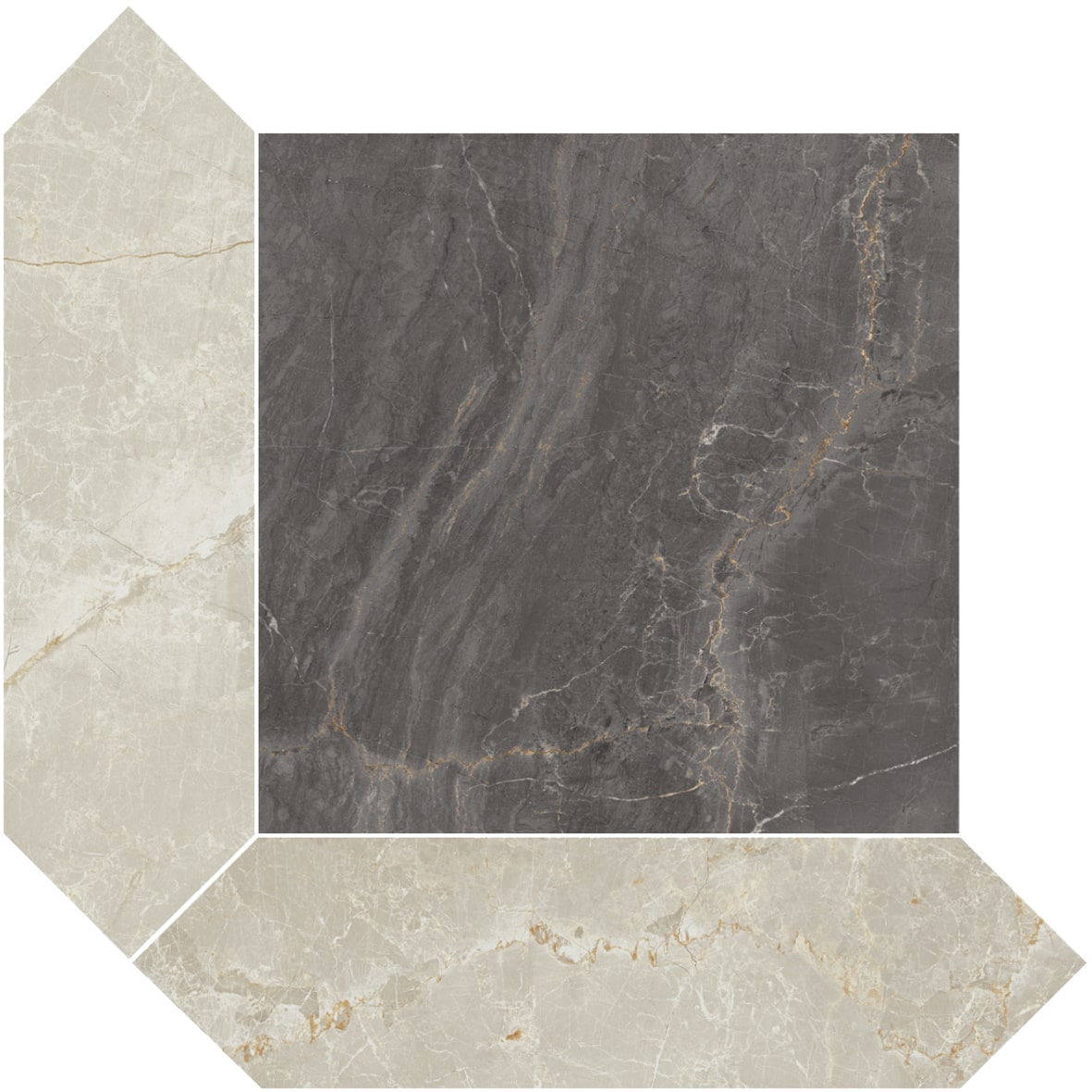 Unterschiedliche Formate, Sockel, Treppenstufen, Terrasse.